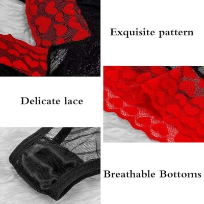 página de título > Rosvajfy Sexy Women's Sexy 3 piezas de lencería Set de encaje y mini falda de malla de malla con pan
