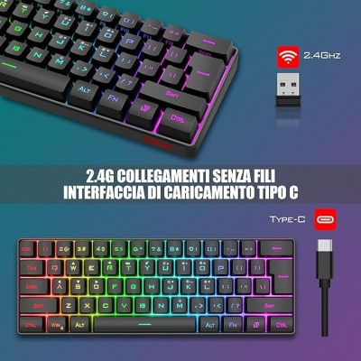 página de título > Redthunder 60% Teclado de juego mecánico con cable, luz de fondo dinámica RGB, Nest Mouse
