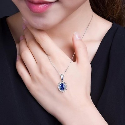 Tolldek Women's Women's Series 18 quilates AU750, con colgante en forma de flores con zafiro, corte