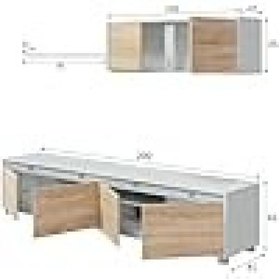 Dimensiones en CM - TV Puerta: Longitud: 200 Ancho: 41 Altura: 43 - Unidad de pared: 105x29h35 - estante: 95x21h3