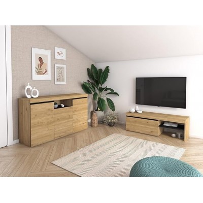 Skraut Home - Sala de estar Natural Set, comedor, muebles auxiliares, móvil -TV 120 cm de roble buff