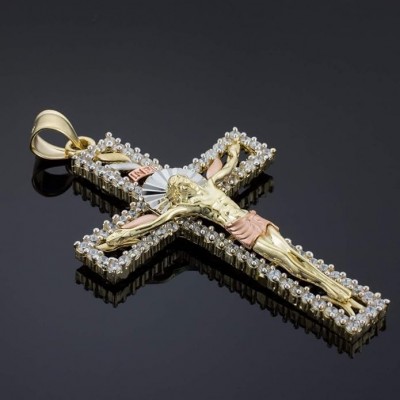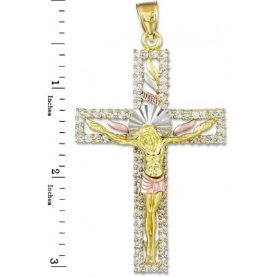 Collar colgante de crucifijo de oro de 9 barat con circonio cúbico (longitud de la cadena disponible
