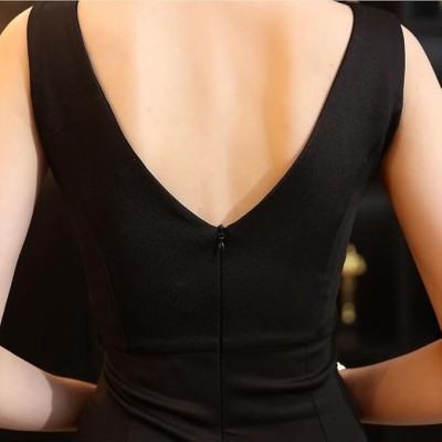 página de título > Ropa > Ropa de plisetate de hterwqa ropa plissettate en satén negro V -neck alto cóctel