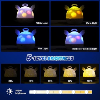 • Ritual Nocturno Personalizado: Cuatro suaves colores de luz y cinco niveles de brillo ajustables crean un acogedor ambiente pre-sueño. Equipada con 20 suaves canciones de cuna, nuestra lampara niños dormir proporciona una atmósfera cómoda y cálida adecuada para la iluminación y música de fondo de cuentos antes de dormir