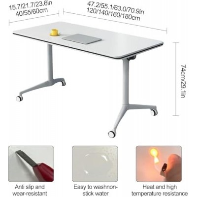 Guardado de espacio: esta mesa de entrenamiento móvil plegable con plegamiento del piso superior está diseñada para apilarse y colocarse fácilmente. Sus dimensiones compactas y su diseño eficiente lo hacen perfecto para pequeñas salas de conferencias o áreas de recepción, lo que garantiza la máxima explotación del espacio sin comprometer la funcionalidad. Ideal para reuniones o sesiones de capacitación, esta mesa rectangular para la sala de conferencias ofrece versatilidad y practicidad.